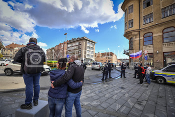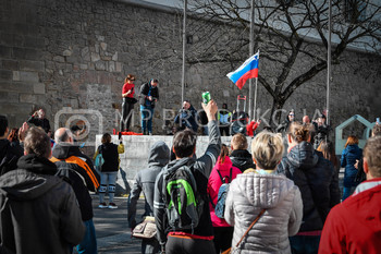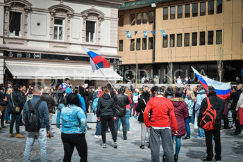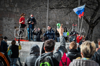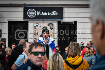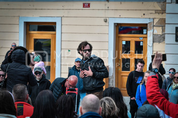 Roman Križnjak, ustanovitelj navijaške skupine Viole Maribor, Vlado Čehić, major Štajerske varde, Protest proti ukrepom vlade Republike Slovenije - Glavni trg - Trg svobode Maribor