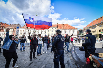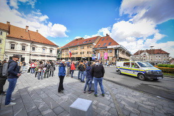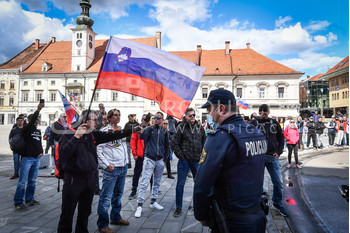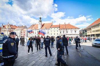 Policija PU Maribor izvaja postopek identifikacije protestnikov, Protest proti ukrepom vlade Republike Slovenije, Glavni trg Maribor
