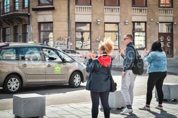 Policija PU Maribor izvaja postopek identifikacije protestnikov, taksist, taksi vozilo, Protest proti ukrepom vlade Republike Slovenije, Glavni trg Maribor