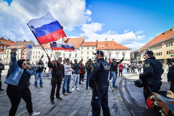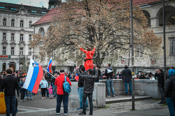 Roman Križnjak, ustanovitelj navijaške skupine Viole Maribor, Vlado Čehić, major Štajerske varde, Protest proti ukrepom vlade Republike Slovenije, Trg svobode Maribor