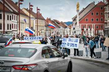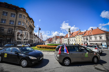 Taksi vozilo, taksist, protestna vožnja, Protest proti ukrepom vlade Republike Slovenije - Glavni trg Maribor