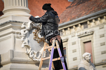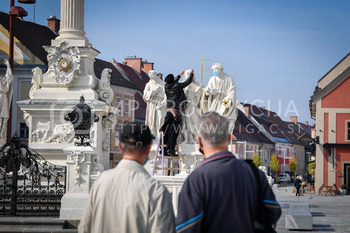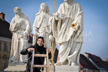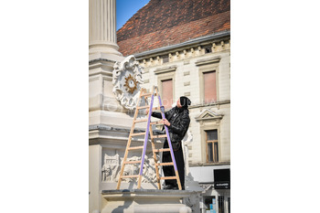 Renato Rene Volker - Inštalacija zaščitnih mask na Kužno znamenje - Glavni trg Maribor