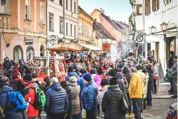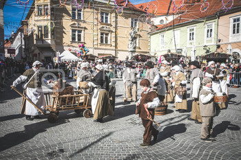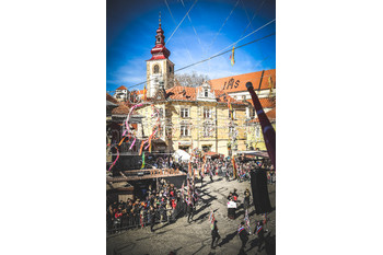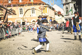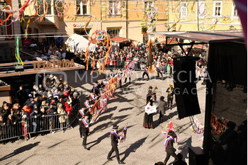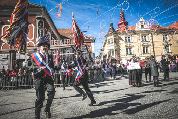 Potek povorke: Prešernova ulica, Slovenski trg (oder v bližini TIC Ptuj: slovensko, nemško), Mestni trg (glavni oder: slovensko, angleško), Minoritski trg (oder Minoritski samostan: slovensko, italijansko).